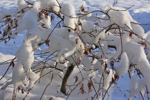 When shrubs become loaded down with snow, your first instinct might be to shake the plant to remove the snow pushing down upon the branches. However, shaking a shrub to remove the snow can cause damage to the tree limbs. Evergreen branches are especially vulnerable to breakage because their foliage remains on the branches throughout winter. Gently brushing the snow off is your best option.